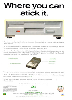 Power Computing placed a full page colour advert in Atari ST User Magazine Issue 68, Page 2 (Oct 91) and in ST Format Issue 27, Page 39 (Oct 91) to show all the features of the drive.