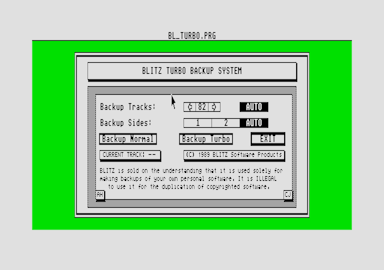 The documentation says the software supplied with this drive disk contains BLITZ.TOS not the usual BLITZ.PRG or BL_TURBO.PRG as supplied with the Blitz Cable. This looks like a special version of the software because this version of the hardware does not use the printer port.