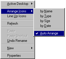 3. Position the mouse over the desktop, press right mouse button and switch ON auto-arrange.