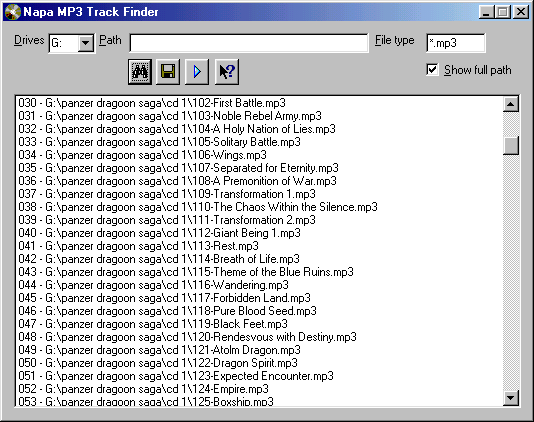 Play - play the selected file using the associated Windows application (only works if show full path is enabled),