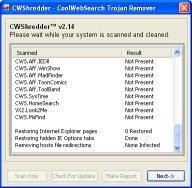 If all is OK a clean report will be displayed. If not, CWS Shredder may need to reboot the computer to remove suspicious files from memory and delete them from the hard disk.
